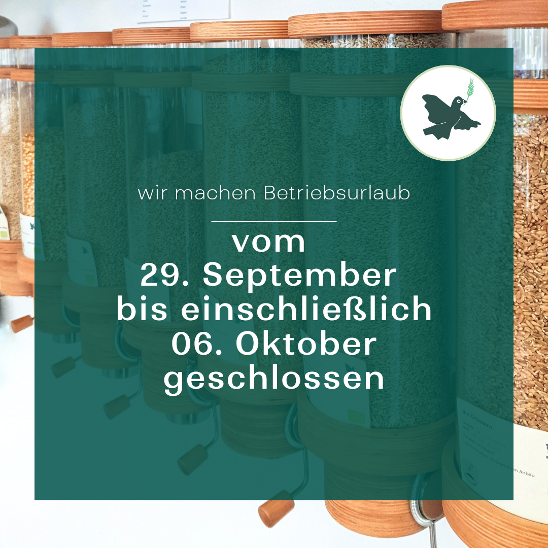 Unsere nächsten Betriebsferien sind vom 29. September bis einschließlich Montag, 06. Oktober